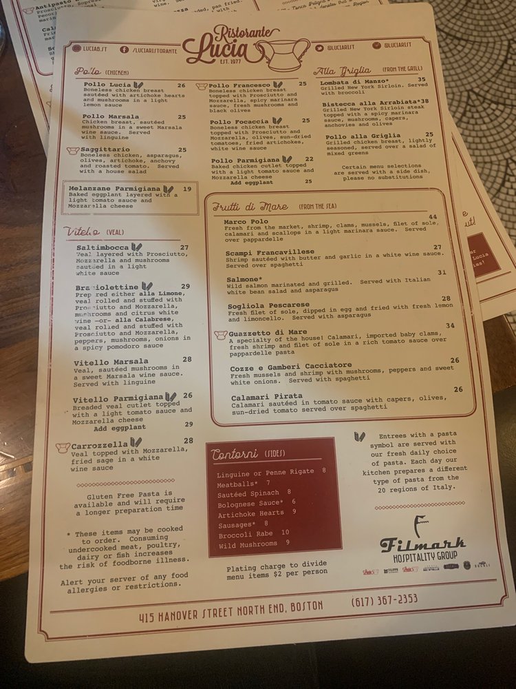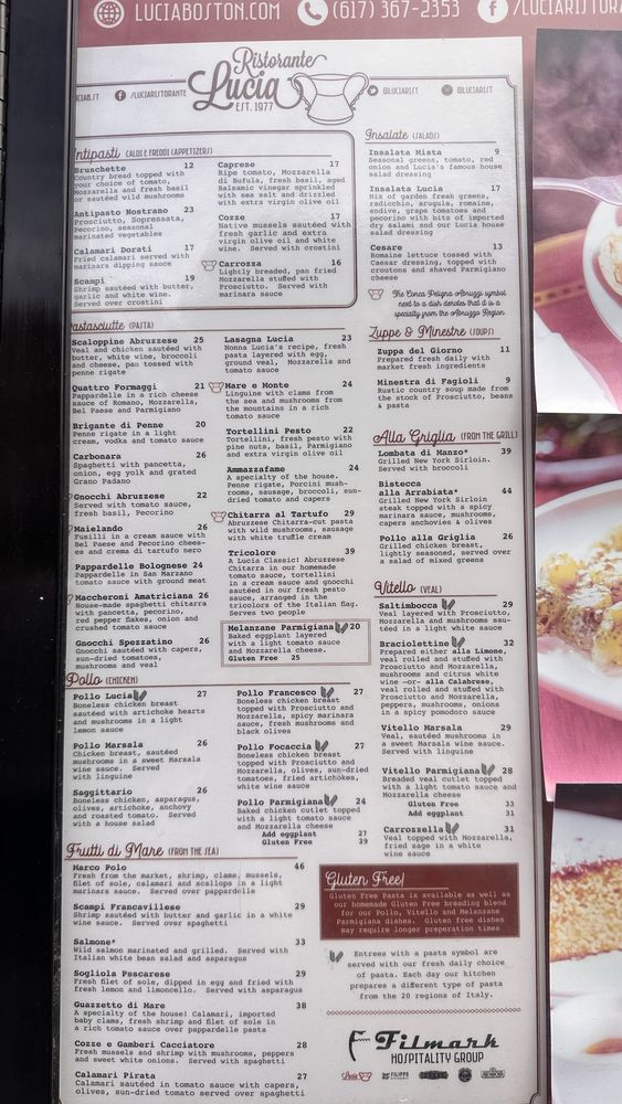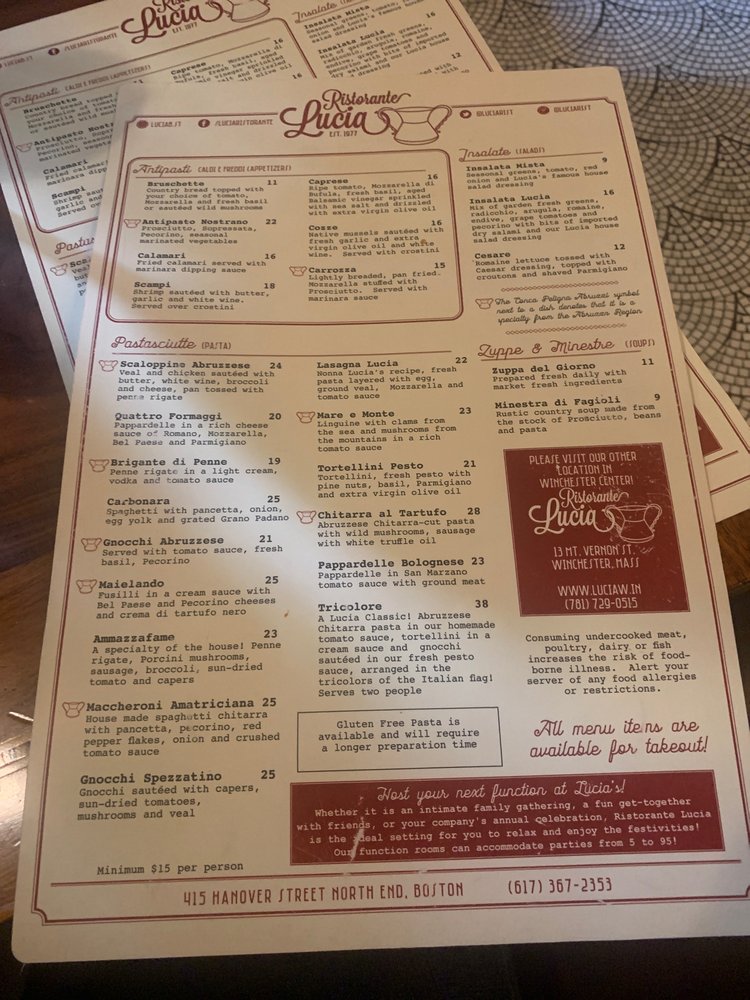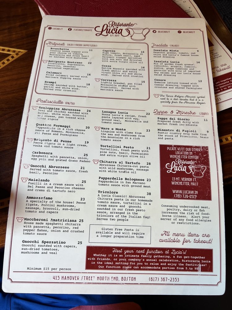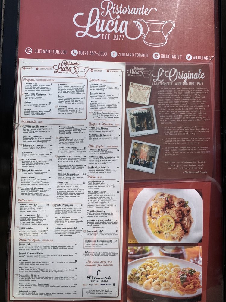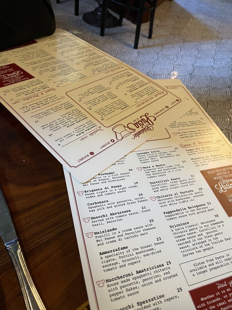 Lucia Ristorante Menu